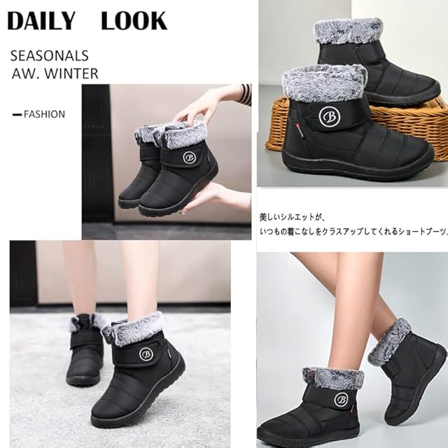 [Hanani] スノーブーツ レディース ジッパー マジックテープ 防寒靴 冬靴 裏起毛 冬用ブーツ 超軽量 防寒ブーツ ショートブーツ カジュアル 雪靴 綿靴 通勤通学 耐久性 雪対応 脱ぎ履き便利