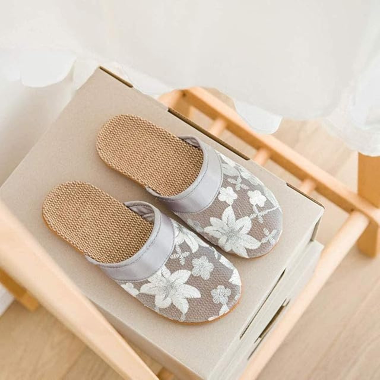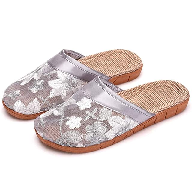 [wendetaimei] レディース メンズ ルームシューズ 夏春 スリッパ 室内履き 静音で軽量 麻 可愛い 滑り止め 来客用 部屋用 ギフト (グレー, measurement_23_point_5_centimeters)