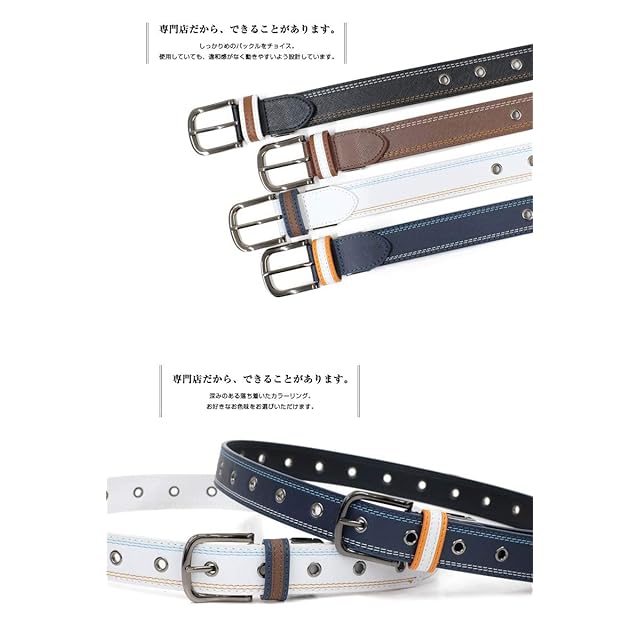 カラーステッチ × ハトメ のデザイン組み合わせが、こだわりを感じるカジュアルなベルト。