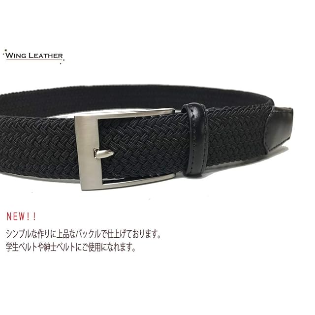 WING LEATHER レザー 学生ベルト ゴムメッシュ 紳士 本革 牛革 黒 メンズ スクール 通勤 シンプル 伸縮 固定 GTP010 (サイズXL:約124cm, ブラック) | AVENIR