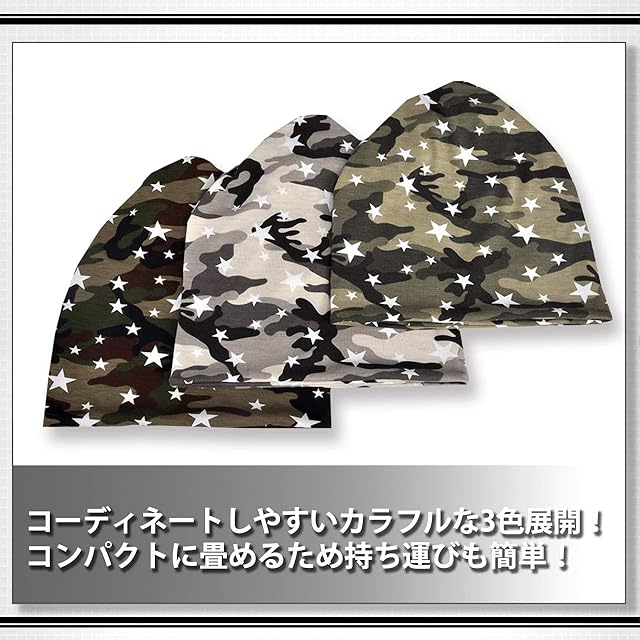 2way で ネックウォーマー としても使う事が出来る オシャレ な 迷彩 カモフラ スター ニット キャップ !