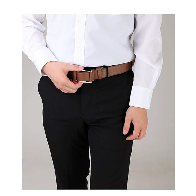 [アトリエサンロクゴ] ベルト 無段階調整 スライドベルト メンズ ビジネス フェイクレザー 男性巾34cm ビジネスベルト oth-ux-be-1047 スクエア-ダークブラウン 日本 ウエスト最大100cmまで対応可能 (FREE サイズ) | AVENIR