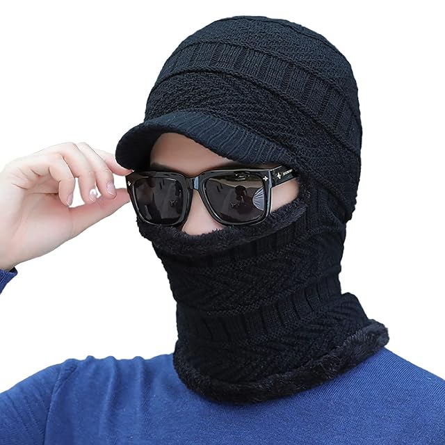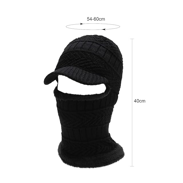 [jbluelover] ニットキャップ メンズ ネックウォーマー ニット帽 帽子 マフラー つば付き 一体式 3way 大きいサイズ ファッション カジュアル あったか 伸縮性 防寒 裏起毛 ふわふわ もこもこ アウトドア 旅行スキー スポーツ 通勤 自転車 バイク 誕生日 クリスマス プレゼント フリーサイズ 3色 男女兼用 ブラック