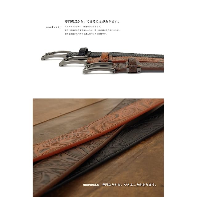 カジュアルな唐草型押しベルト。どんなコーデにもあわせやすく、使いやすいですね。