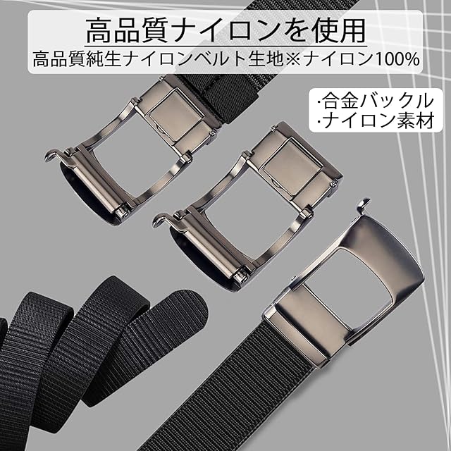 【高品質】 強化バックルは頑丈で丈夫かつ軽量で、外圧に強く耐えます。高品質なベルトなので、ハードな使用でもびくともしません。また、革ベルトとは異なり、様々な体型・ウエストにフィットする無段階調整が可能で、好きな位置で長さを調整できます。どんな体型の方でも気軽に着用でき、長時間のドライブや旅行、会食なども窮屈感なく利用できます。