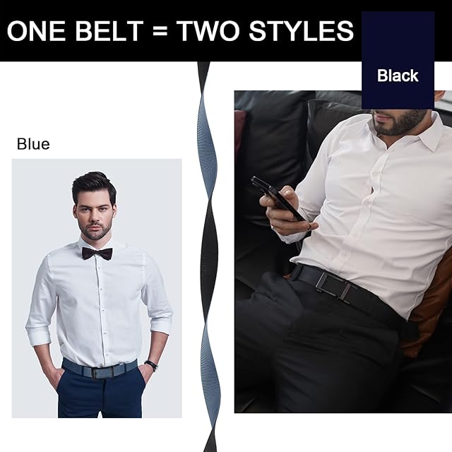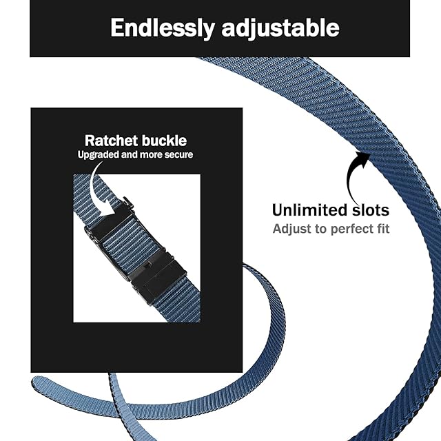 [JUKMO] ゴルフ ベルト メンズ カジュアル ストレッチ ラチェット式ベルト ナイロンベルト 作業用ベルト (相応しい腰の長さ 60cm-110cm(全長 125cm), ブルー/ブラック)
