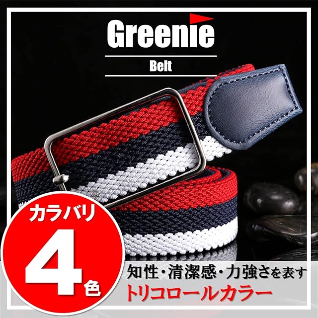 【Greenieトリコロールベルト】ビジネス・スポーツシーンにトリコロールのアクセント!Greenieトリコロールベルト!伸縮性・柔軟性・耐久性に優れたストレッチ素材が、コーディネートを引き立てます!