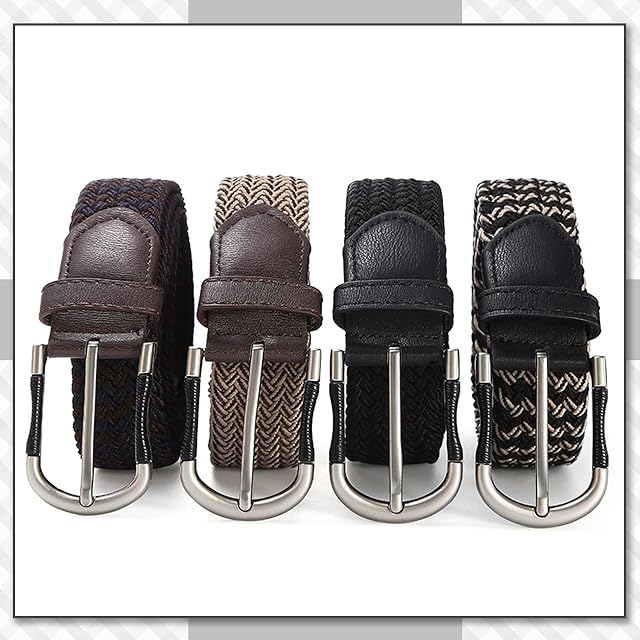 メッシュ の 編み込み デザイン が珍しい カジュアル ゴム ベルト !ダークカラー がおしゃれに決まります!