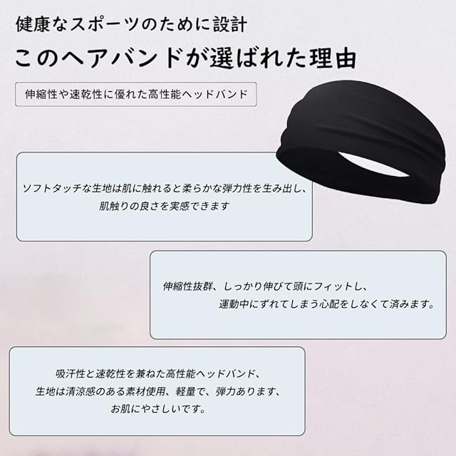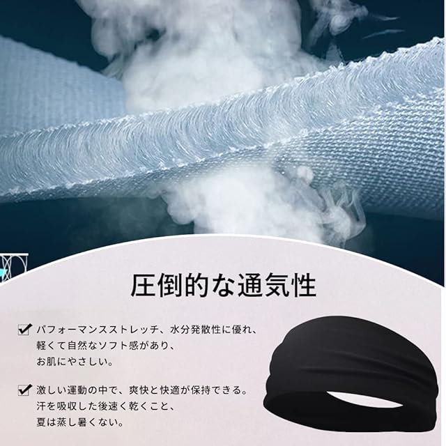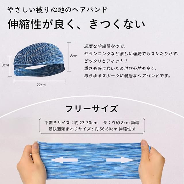 【通気性&伸縮性】通気性の優れた素材を使用している為、様々なスポーツでお気軽にご使用いただけます。適度な伸縮性で、女性の方はもちろん、男性でも程よくフィットし、激しい動いてもズレにくい。また、幅が太いので小顔に見え、どんな頭の形にも合います。