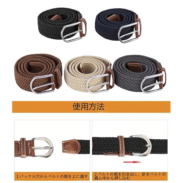 【ベルト素材】伸縮性のある素材と編み込み方法により、ベルトの本体が伸び縮みすることで、メンズ・レディース関係なく、 フリーサイズで使用頂けます