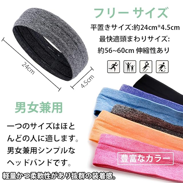 【サイズ(平置き)】:約23×5㎝ フリーサイズ 伸縮性があるので、締め付け感や圧迫感がなし、メンズ、レディース通用できます。男女兼用タイプヘアバンドです。