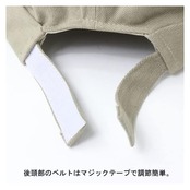 シンプルなデザインのフィッシャーマンキャップ。後頭部のベルトはマジックテープになっていて簡単に調節できます。