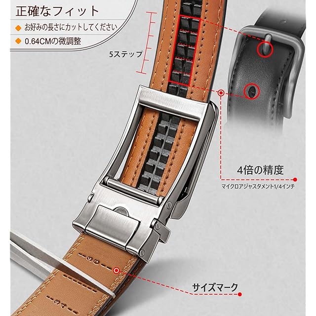 [BULLIANT] メンズベルトビジネス オートロック式 大きいサイズ 紳士用ベルト 本革 - 使いやすい スーツベルト 穴なし 無段階調節 7サイズ ギフトボックス付き 父の日のプレゼント(紺,全長105cm/ウエストサイズ71-86cm調整可能) | AVENIR