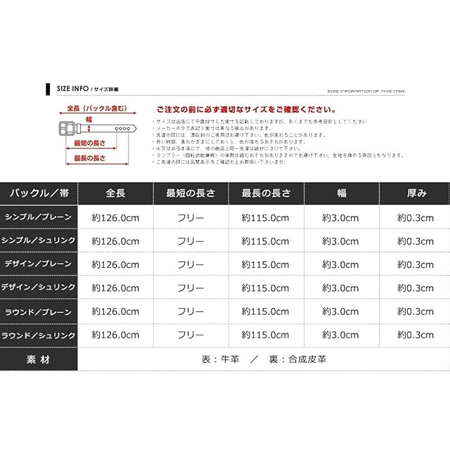✅【簡単⾧さ調節可能】ベルトの裏に間隔約5mmの溝(レール)があるので締まり具合を微調整できます。ベルトの裏に溝(レール)があり、その部分をバックルで挟み込みロックするという仕組みです。 取り外す際はバックルを持ち上げる事で、ロックが簡単に解除されます。 穴がない事によって固定点周辺の革がヘタレないのが嬉しいポイント。 耐久性も安心頂けます。またバックルをはずし、帯をハサミでカットする事によって簡単にサイズを調整可能です。
