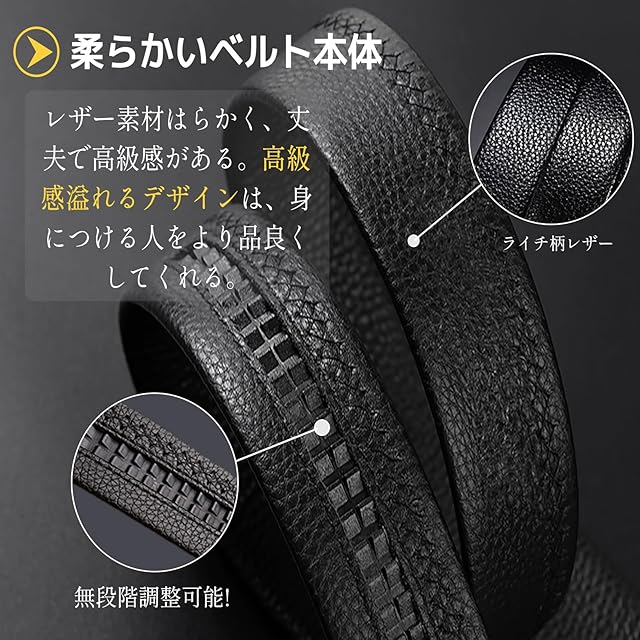 【スタイリッシュなデザイン】紳士用ベルト。取り付け・取り外しとてもカンタン!小学生でも10秒で理解できるカンタン構造。職人がこだわったで手触り、艶、高級感、耐久性。それらをひたむきに追求。シンプルならではの上品さ。カジュアル、ビジネス共に大活躍必須のスマートデザイン。