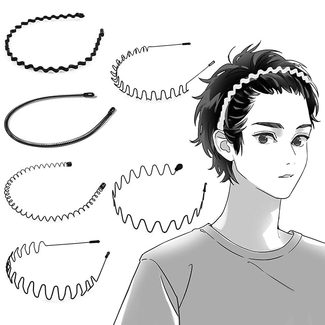 mefeny カチューシャ メンズ ヘアバンド レディース 防錆メッキ 6本セット細い 髪留め 金属製 波型 シリコンゴム付き 痛くない ヘアバンド 髪飾り 洗顔 部屋用 前髪クリップ シンプル ファッシション オシャレ 黒