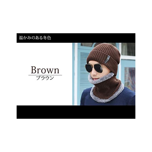 [Teddy] ニット帽 メンズ スヌード 2点セット 秋冬 防寒 暖かい 裏起毛帽子 ゆったり ニットキャップ hat063 (ブラウン, M)
