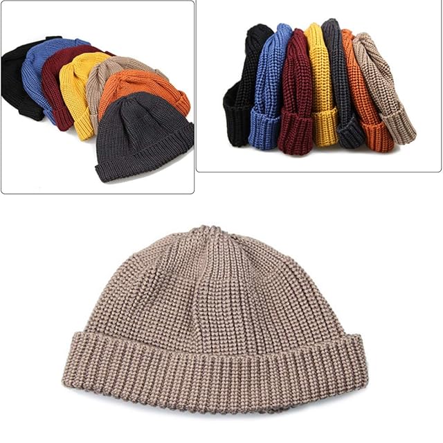 [Clape] メンズニットキャップ ビーニー帽子 ロールキャップ フィッシャーマンキャップ ニット帽 つばなし帽子 サグキャップ ワッチキャップ おしゃれ 浅め ストレッチ素材 保温性優秀 男女兼用 秋冬(ブラウン)