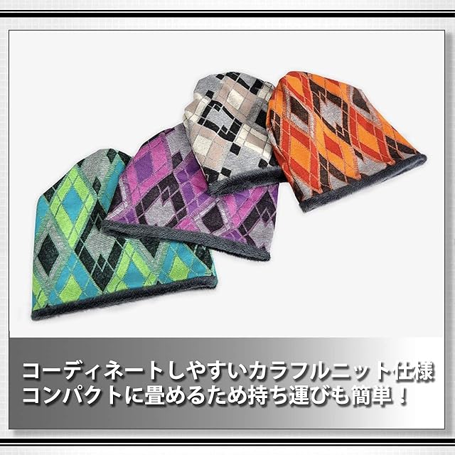 オシャレ な ダイヤ型 チェック デザイン カジュアル 2WAY ニット キャップ !秋冬 防寒 用に裏起毛デザイン。ネックウォーマー にもなる優れもの。メンズ レディース両対応の ユニセックス ニット帽。