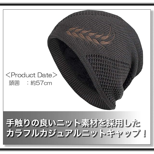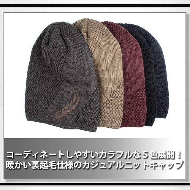 オシャレ な メンズ 編み込み カジュアル リーフ ニット キャップ !秋冬 防寒 用に裏起毛デザイン。見た目だけじゃなく、防寒性もGOOD!