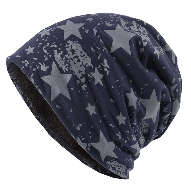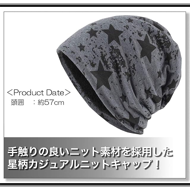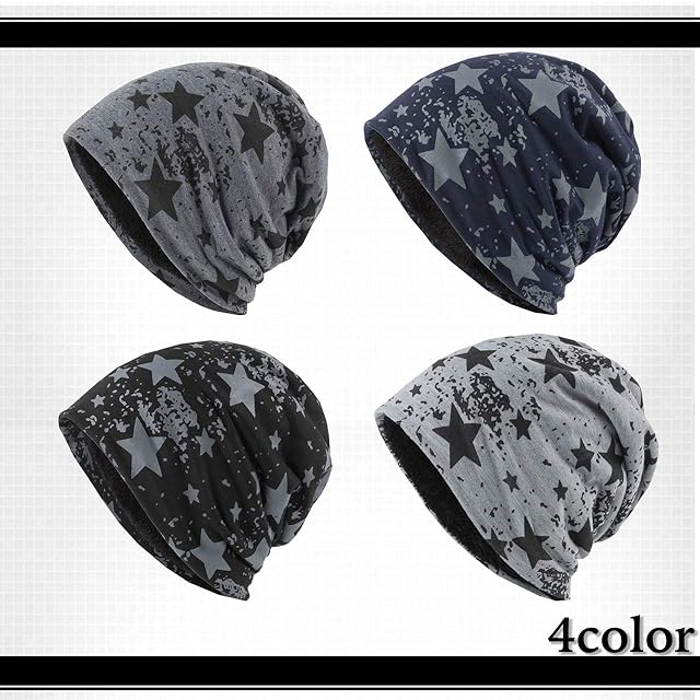 オシャレ な メンズ スター 星 デザイン カジュアル ニット キャップ !秋冬 防寒 用に裏起毛デザイン。見た目だけじゃなく、防寒性もGOOD!