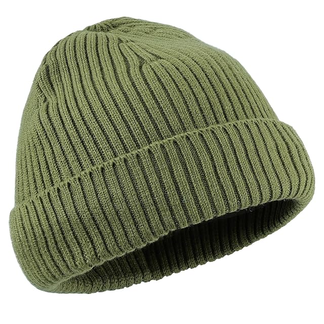 [Croogo] ビーニー ストレッチ ニット帽 柔らかい 保温 軽量 肌に優しい 被り心地良い 男女兼用 無地 雪かき帽子 秋冬 防寒 通勤 通学 アウトドア 折り返し 暖かい帽子(G-KH43-グリーン)
