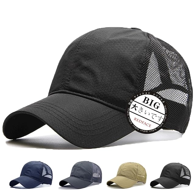 RF キャップ メンズ 大きいサイズ 帽子 60-65cm 深め メッシュ 通気 速乾 軽薄 男女兼用 おしゃれ かっこいい つば長 人気 ぼうし(ブラック)