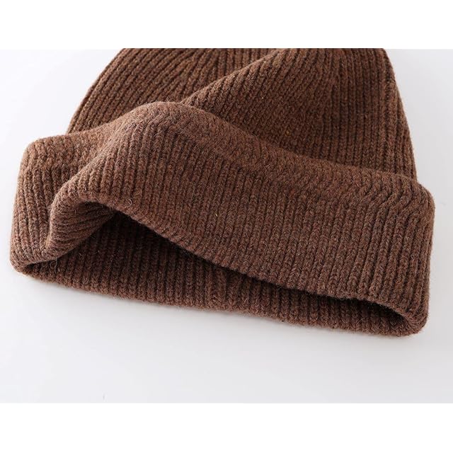 [Connectyle] ユニセックス メンズ 冬 ニット キャップ リブ ニット帽子 折り返し ワッチキャップ 大きいサイズ ブラウン
