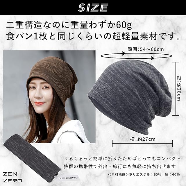 ✅【商品仕様】 ◆サイズ:ワンサイズ(フリー) ◆平置き採寸:縦 約28cm/横幅 約27cm 頭周り:約54~60cm ◆重量:約60g(6枚切り食パン1枚と同等) ◆素材構成 ポリエステル:60%/綿:40%