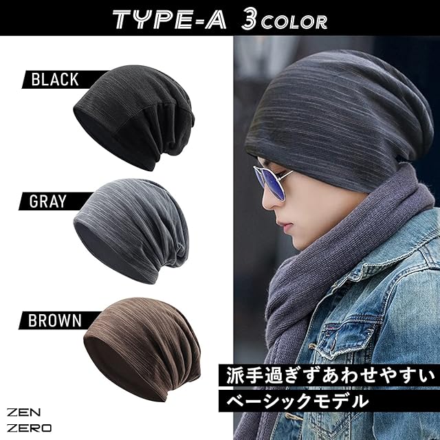 [ZENZERO] 帽子 メンズ ニット キャップ オールシーズン ミックス 調 デザイン (タイプB-ブラック)