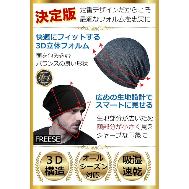 ✅【 超伸縮性 】 伸縮性に優れた素材を採用。締め付け感がなく、型崩れもしにくい快適な生地を採用。 (頭囲:56〜62cm 男女兼用) ✅【 良好な肌触り・高い通気性 】 肌触り・通気性・速乾性抜群で被り心地良好。シーズン問わず活躍します。 ✅【 お手入れ簡単 】ご自宅で洗えるため、日常の洗濯やお手入れも簡単。アイロンも不要です。