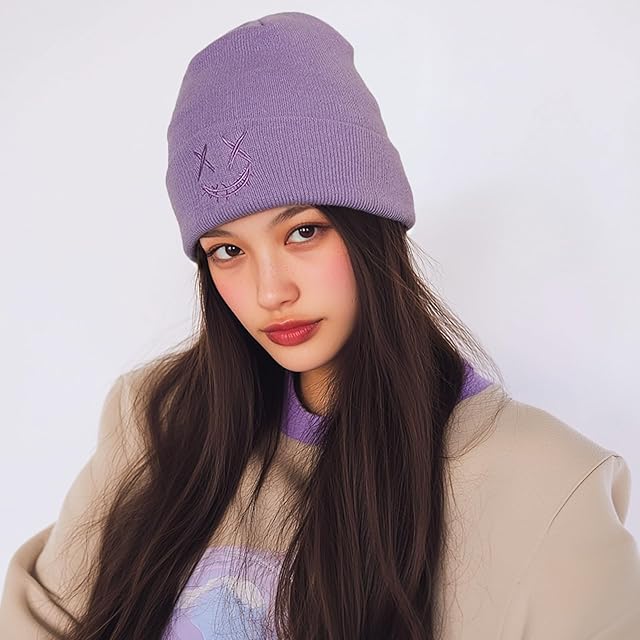 [Croogo] ビーニー 浅い ニット帽 メンズ レディース 無地 刺繍 シンプル 2層生地 イスラムワッチ帽 カプッチョリッド 秋 冬 暖かい ストリート 柔らかい 柔らかい 肌に優しい おしゃれ 通勤 通学(G-KH26-パープル)