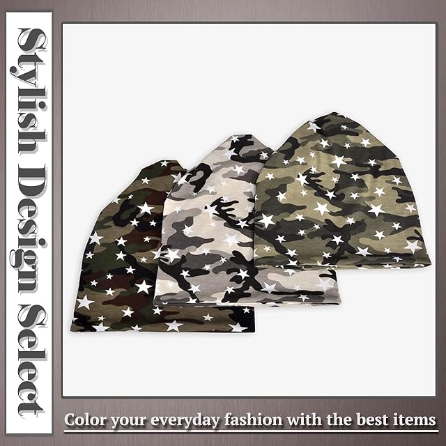 2way 仕様のため ネックウォーマーとしても 利用可能!オシャレ な 迷彩柄に 星のデザインが 印象的な カジュアル カモフラ デザイン ニット帽 。