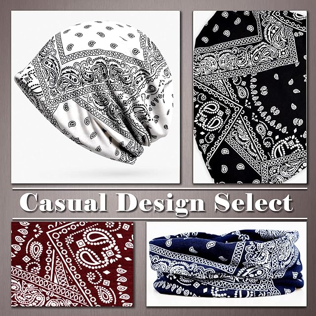 ネックウォーマー としても使える オシャレ なペイズリー柄 の ニット キャップです。