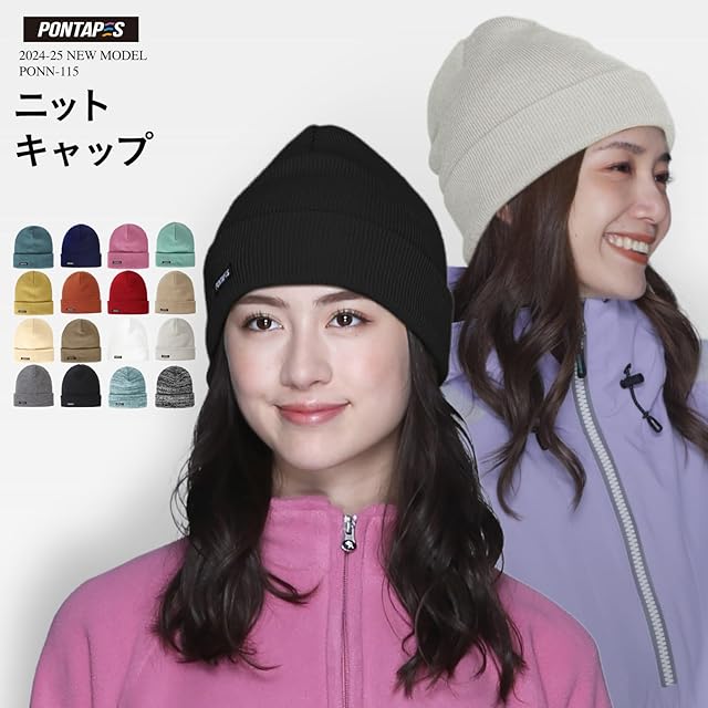 PONTAPES(ポンタペス) ニット帽 ビーニー メンズ レディース 2WAY シングル/折り返し ダブル PONN-115 パープルピンク ニット帽子 毛糸の ぼうし スノーボード スノボ スキー ニットキャップ ビーニー