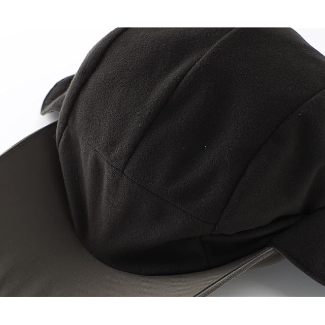 暖かいフリース裏地のメンズ耳あて付き帽子は、耳や首まで保温し、耳あてが折りたたむと、ランニングキャップになる