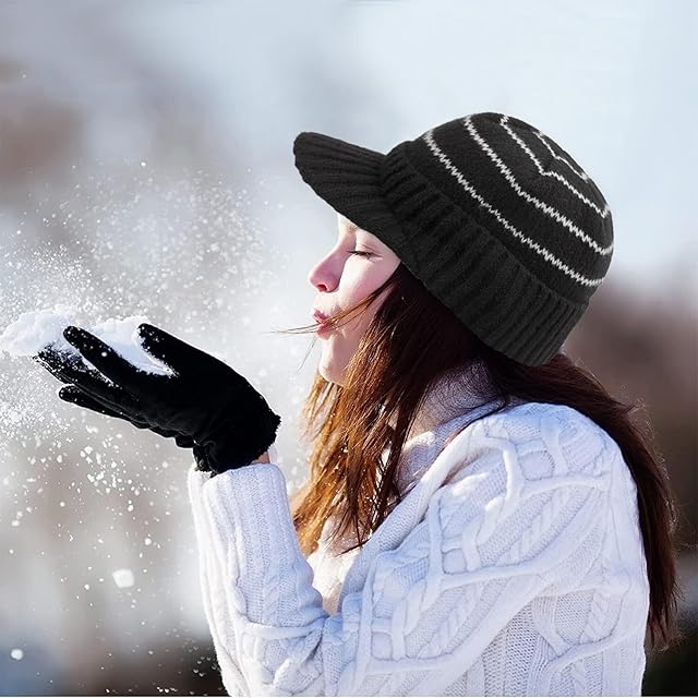 [Croogo] ニットキャスケット帽子 冬 つば付きニット帽 メンズ レディース 毛糸 編み 厚手 保温 防寒対策 小颜效果 大きいサイズ ぼうし ワッチ uvカット 男女兼用 登山 自転車 通勤 防寒ニット帽(G-NB02-ベージュ)
