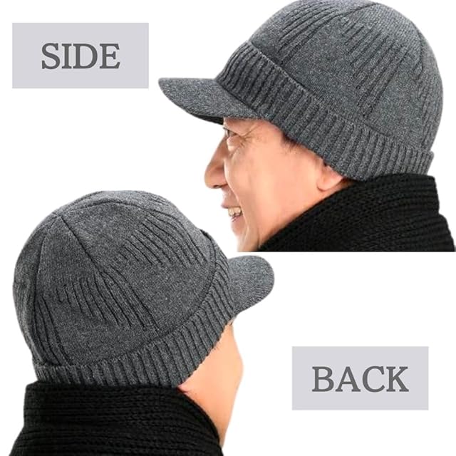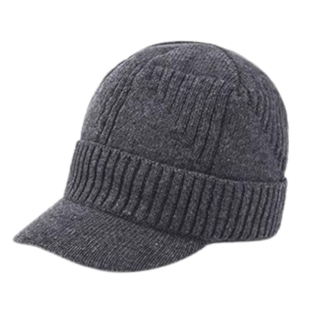 つば付きニット帽 ニットキャスケット メンズ おしゃれ 裏起毛 シンプル バイザー付き 厚手 保湿 防寒 防風 裏ボア スノボ スノーボード (グレー)