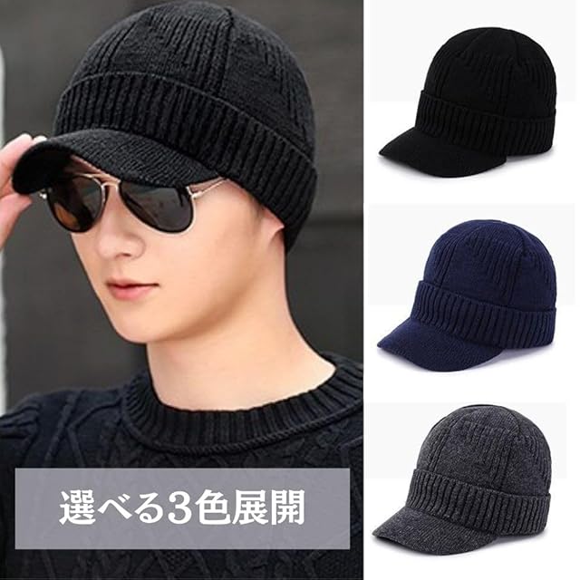 【内側はモコモコ裏起毛】表は地厚みのあるニット生地で耳まで覆い暖かいです。バイザー付きの深めの美シルエットで、小顔効果も狙えます。