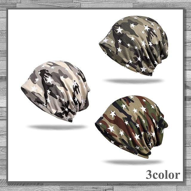 迷彩柄 と 星柄 が特徴的で オシャレ な ニット キャップ!性別問わずご利用いただけます。