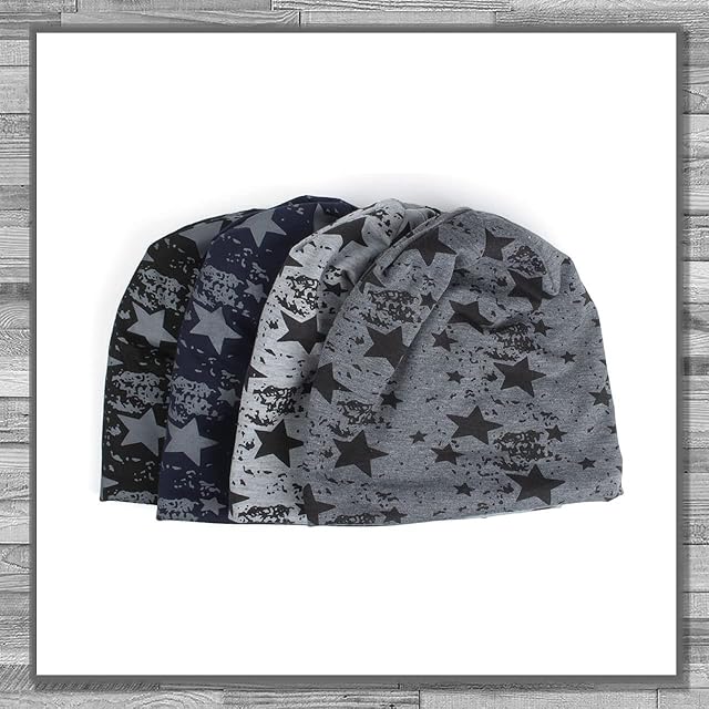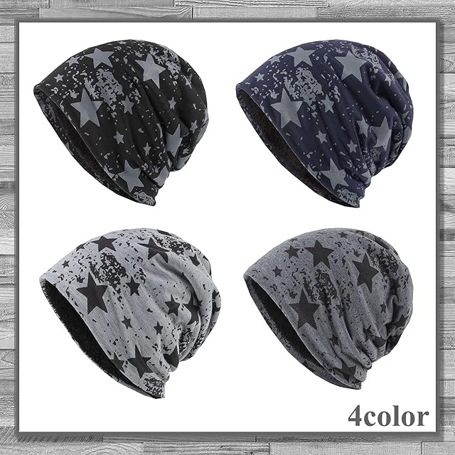 さりげなく星柄を散りばめたデザインのニット帽です。