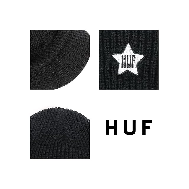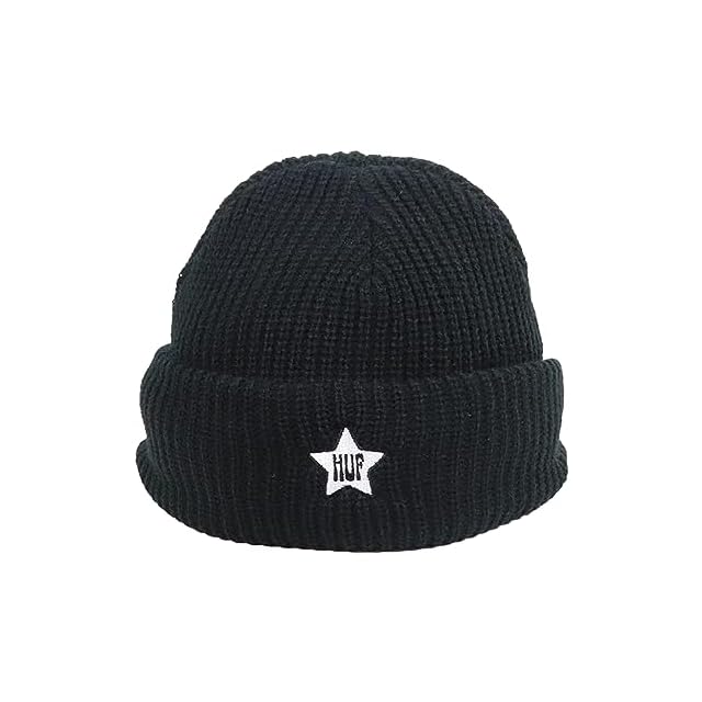 [ハフ] ツバ付き ニットキャップ メンズ レディース ニット帽 ストリート ブランド バイザー ビーニー ロゴ スター 帽子 男女兼用 秋 冬 ブラック 黒 [並行輸入品]
