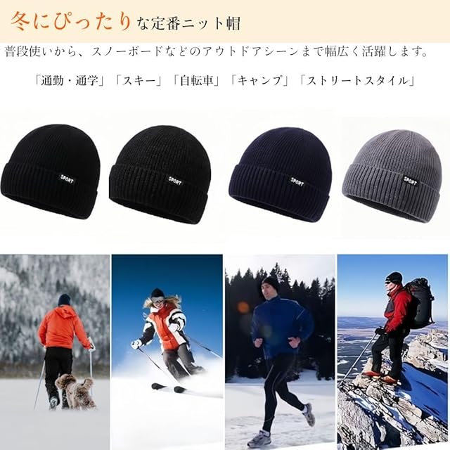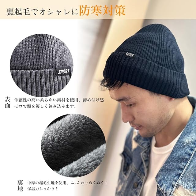✅【ニット帽の詳細について】表地:アクリル100% 、裏地ボア:ポリエステル100%。 頭回り:~65cm(優れた伸縮性)、平置き採寸サイズ:縦23㎝、横22㎝。折り返し:約6.5㎝。カラー:ブラック、グレー、ネイビー、杢ブラックの人気なカラーバリエーション。