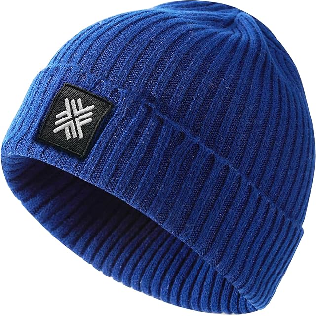 [FIRN] フィルン ニット帽 ビーニー ニットキャップ ワッチキャップ 防寒 秋 冬 アウトドア スキー スノボー ニット スクエア ロゴ 帽子 防風 抗菌防臭 厚手 フリーサイズ メンズ レディース (ブルー)