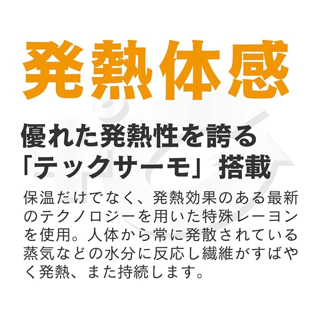 体から常に発散されている蒸気などの水分に反応し、繊維がすばやく発熱、また持続します。