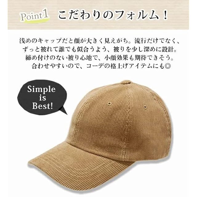 [hanahana15] キャップ コーデュロイ 深め Lサイズ 大きいサイズ 大きめ レディース 秋冬 メンズ 男女兼用 無地 シンプル おしゃれ コットン 綿100% 帽子 (【あしあと】アーモンドモカ)