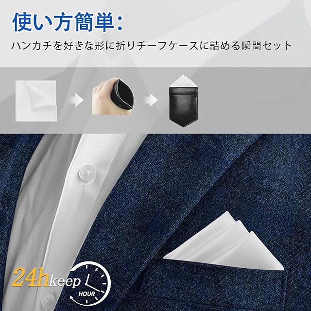 ✨【挿すだけ】自分で折りたたむ必要が無い、ただポケットに挿すだけで外からは判らない。型崩れの心配なし、おしゃれな装いをキープしながら、いつでも綺麗な状態でご使用いただけます。ネクタイとのコンビネーション