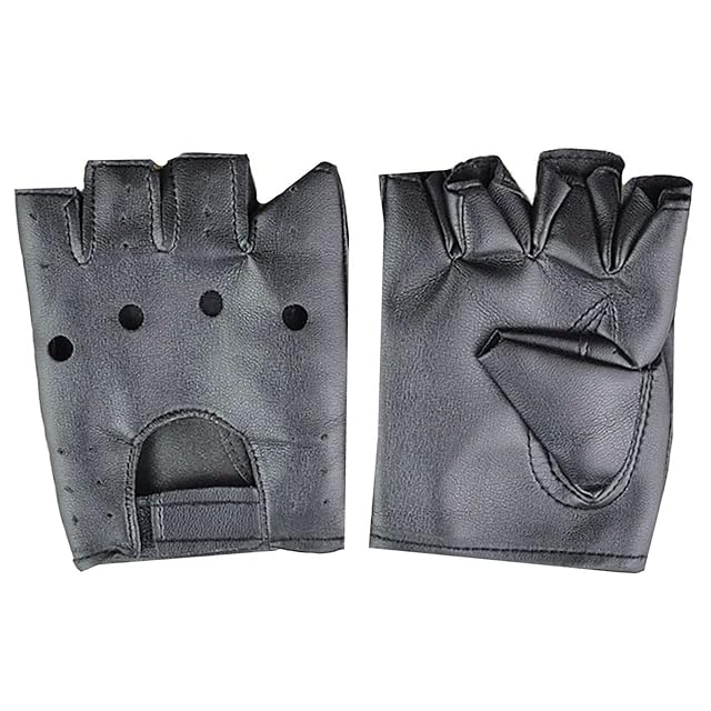 CHROME CRANE(クロム クレイン) メンズ 手袋 グローブ 指なし レザー 革 バイク サイクリング トレーニング TB022 (01.ブラック)