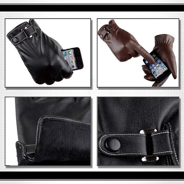 スタイリッシュなデザインで おしゃれ & 高級感あふれる メンズ 防寒 レザー 手袋 グローブ!裏側の全てが 裏起毛 になっておりしっかりと 防寒!着用したまま スマホ が操作可能!