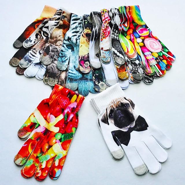 ねこ タイガー 犬 などが3Dプリントされた ユニークな デザインの 秋冬 防寒 メンズ レディース ニット 手袋 !
